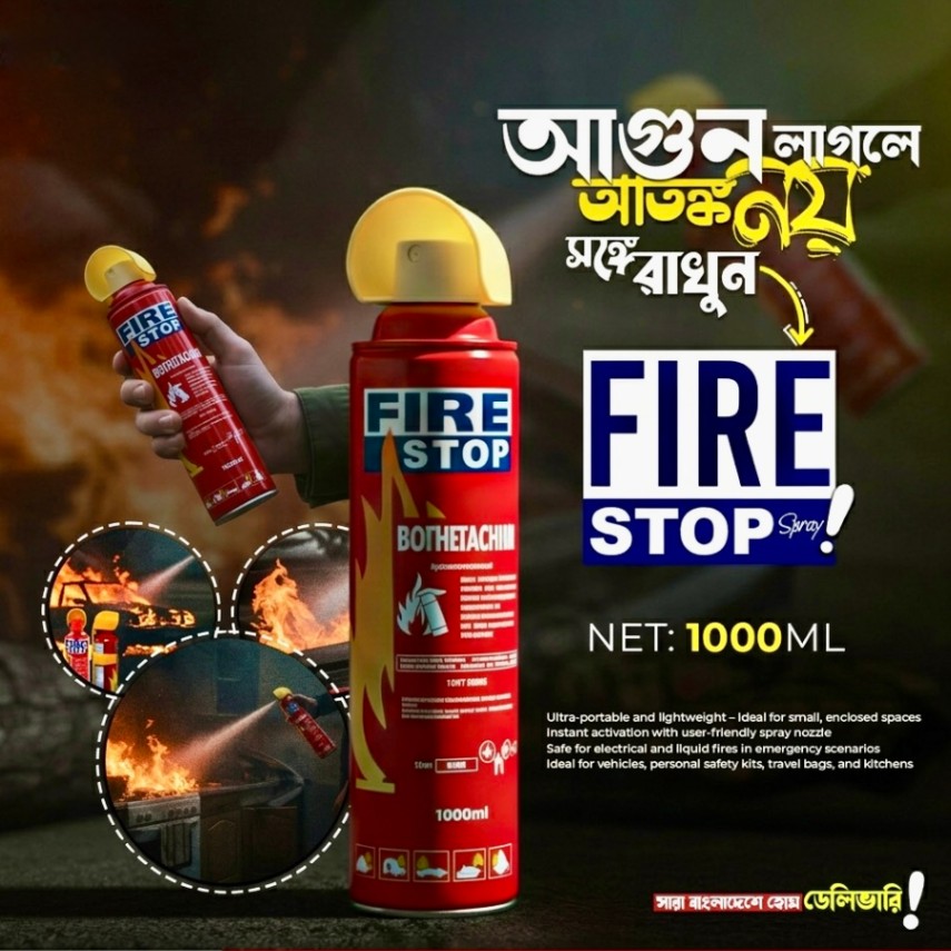 দুর্ঘটনা বলে কয়ে আসে না, আর আগুনের ক্ষেত্রে প্রতিটি সেকেন্ড মূল্যবান। Fire Stop ব্র্যান্ডের এই ১০০০ মিলি ফায়ার এক্সটিংগুইশার স্প্রেটি এমনভাবে ডিজাইন করা হয়েছে যাতে যে কেউ এটি সহজে ব্যবহার করে প্রাথমিক পর্যায়ের আগুন নিভিয়ে বড় ধরনের বিপদ এড়াতে পারে।