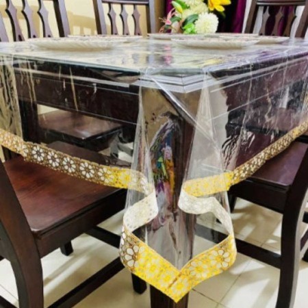স্বচ্ছ ও মার্জিত ডিজাইন: এটি সম্পূর্ণ স্বচ্ছ হওয়ায় টেবিলের কাঠের কারুকাজ বা ডিজাইন স্পষ্ট দেখা যায়। সাথে থাকা গর্জিয়াস লেস বর্ডার আপনার সাধারণ টেবিলকেও দেবে প্রিমিয়াম লুক।