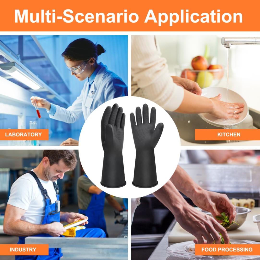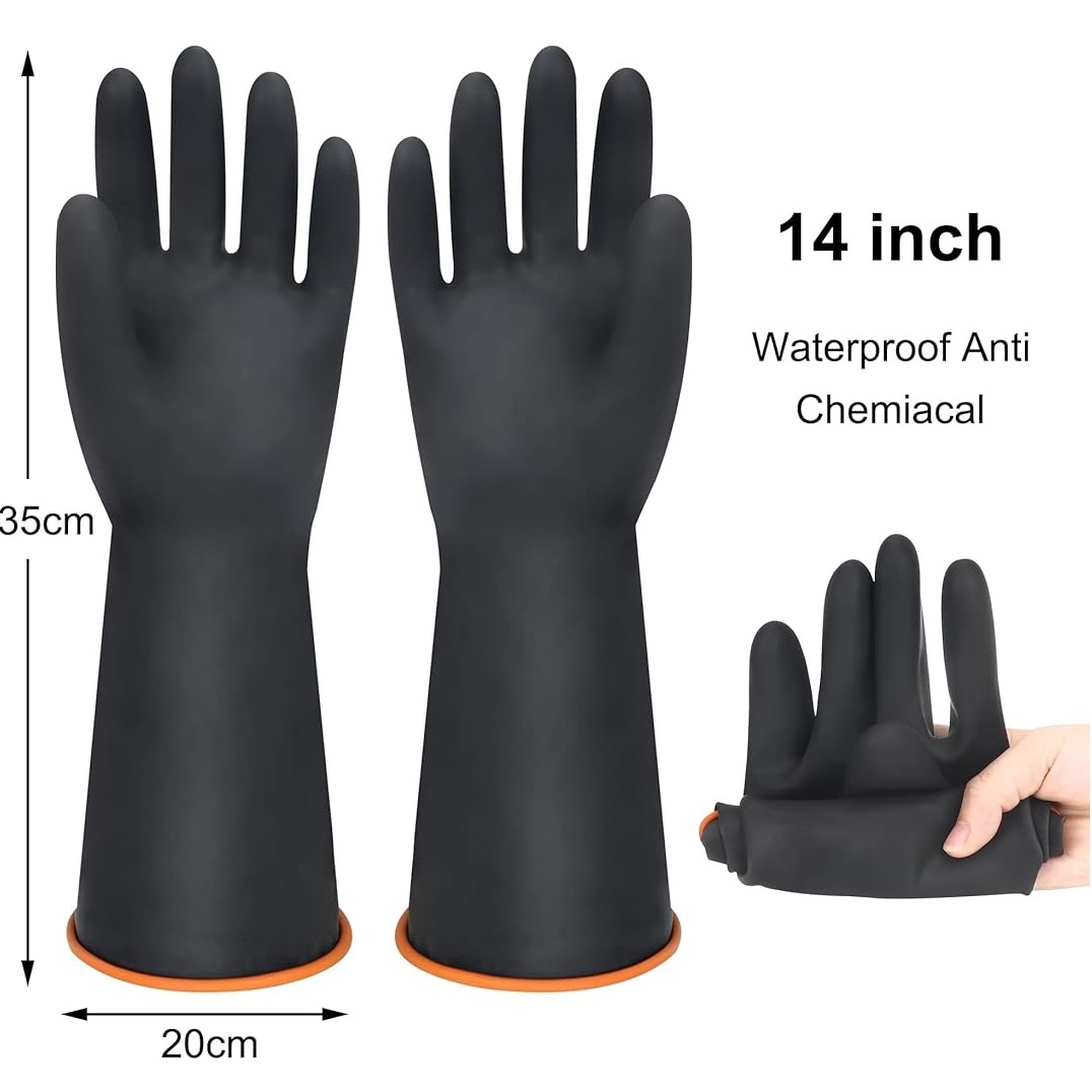 আরামদায়ক ও লম্বা ডিজাইন: এর লং-কাফ ডিজাইন আপনার হাতের কব্জি পর্যন্ত সুরক্ষা নিশ্চিত করে এবং পানি বা কেমিক্যাল ভেতরে ঢুকতে বাধা দেয়।
